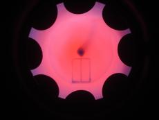 Na spodnjem posnetku je prikazan pogled v eno od postavljenih sežigalnih komor med delovanjem (levo) in pogled v komoro skozi gorilnik (desno) ....